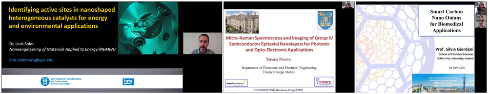 Prof. Lluís Soler(left), Prof. Tatiana Perova(middle), Prof. Silvia Giordani(right) are saying hello to all the participants
